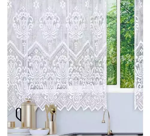 Cortina de cozinha de Renda Jacquard Branca Marina é uma cortina em estilo com uma linda estampa para inspirar a sensação relaxante.